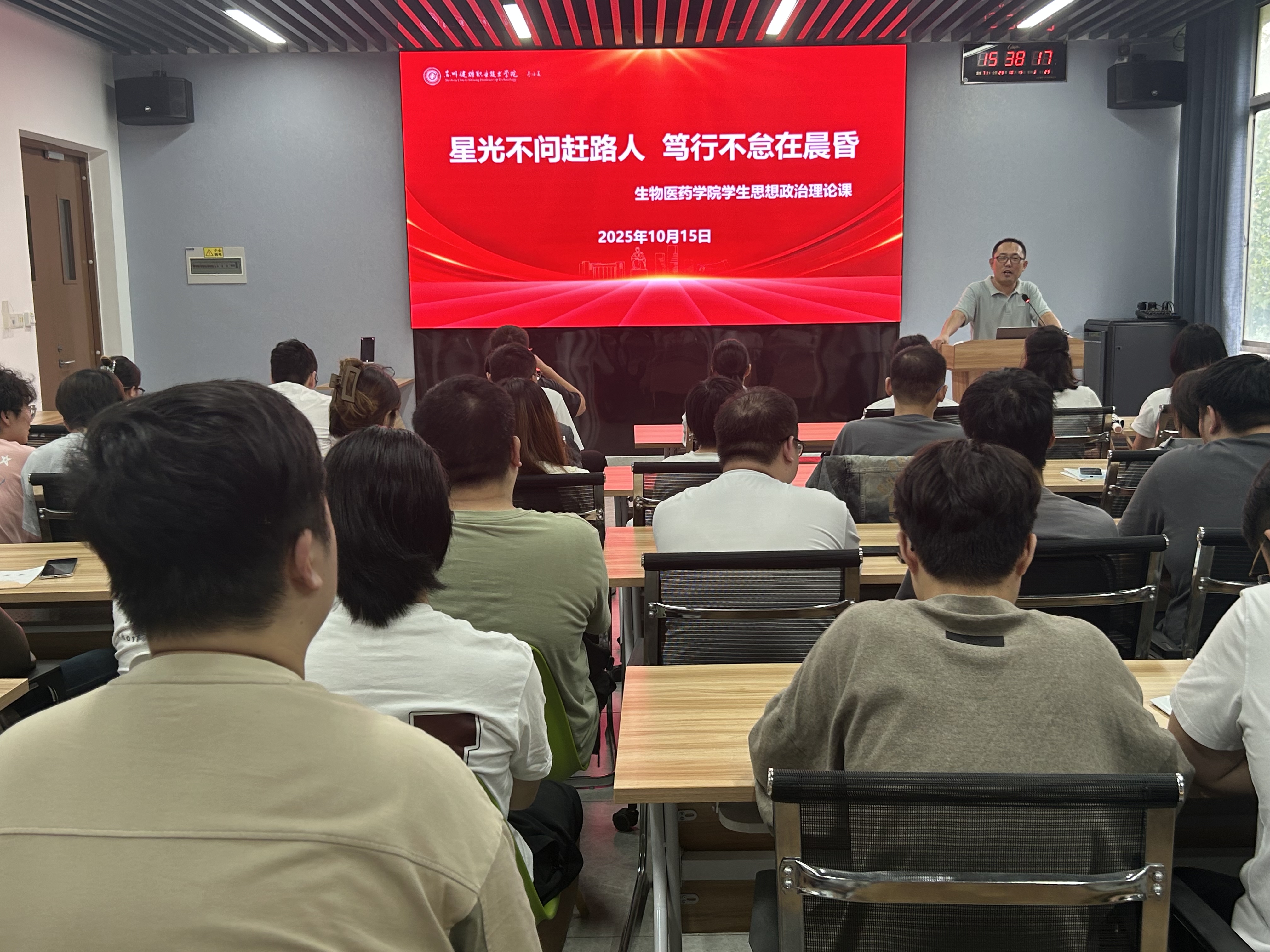 为认真贯彻落实立德树人根本任务,充分发挥思想政治理论课在学生成长成才中的重要作用,10月15日,生物医药学院党总支书记王志明为常州大学生工233和盐城工学院L制药251两个本科班学生上主题为“星光不问赶路人笃行不怠在晨昏”的思政课。