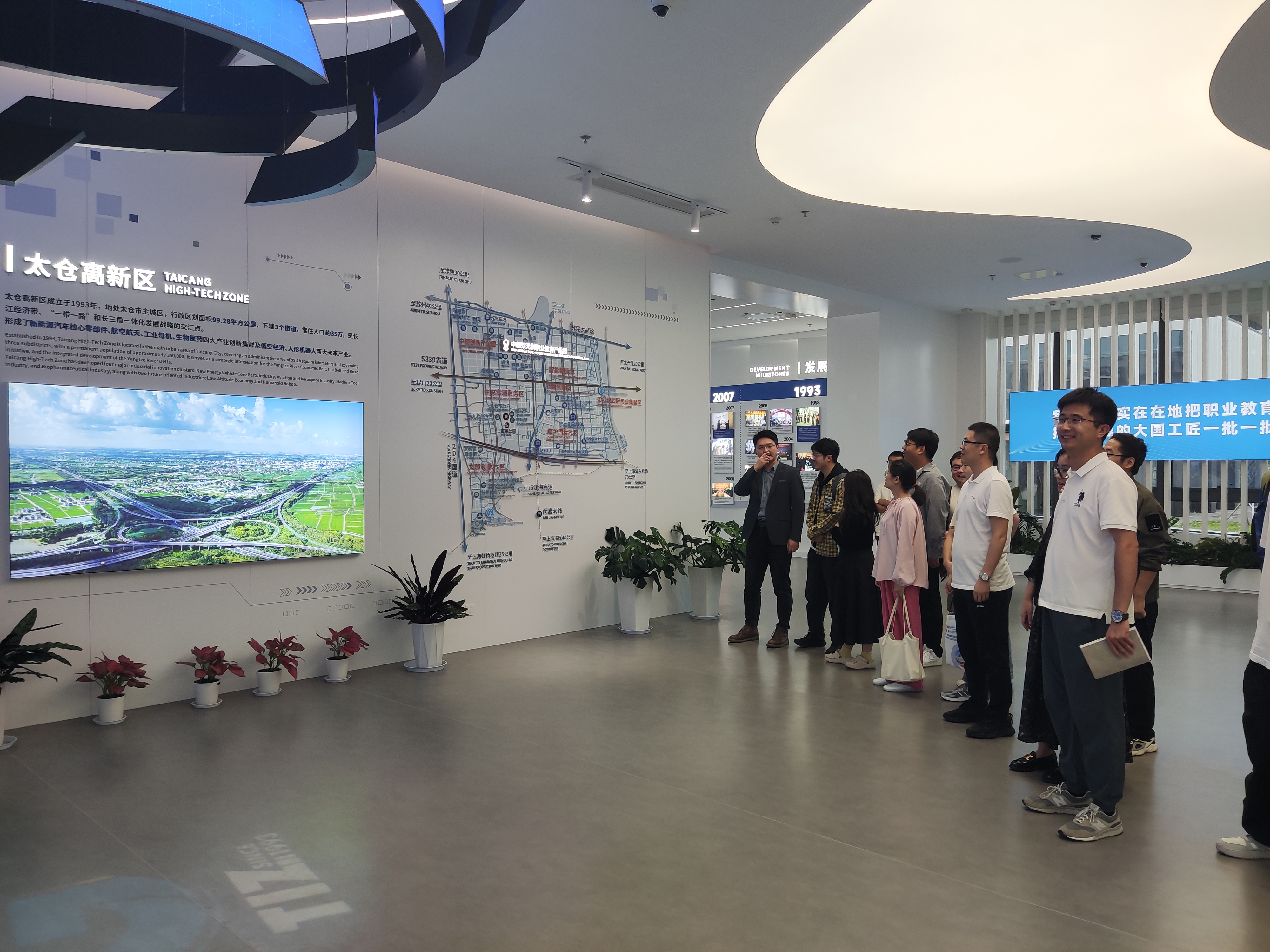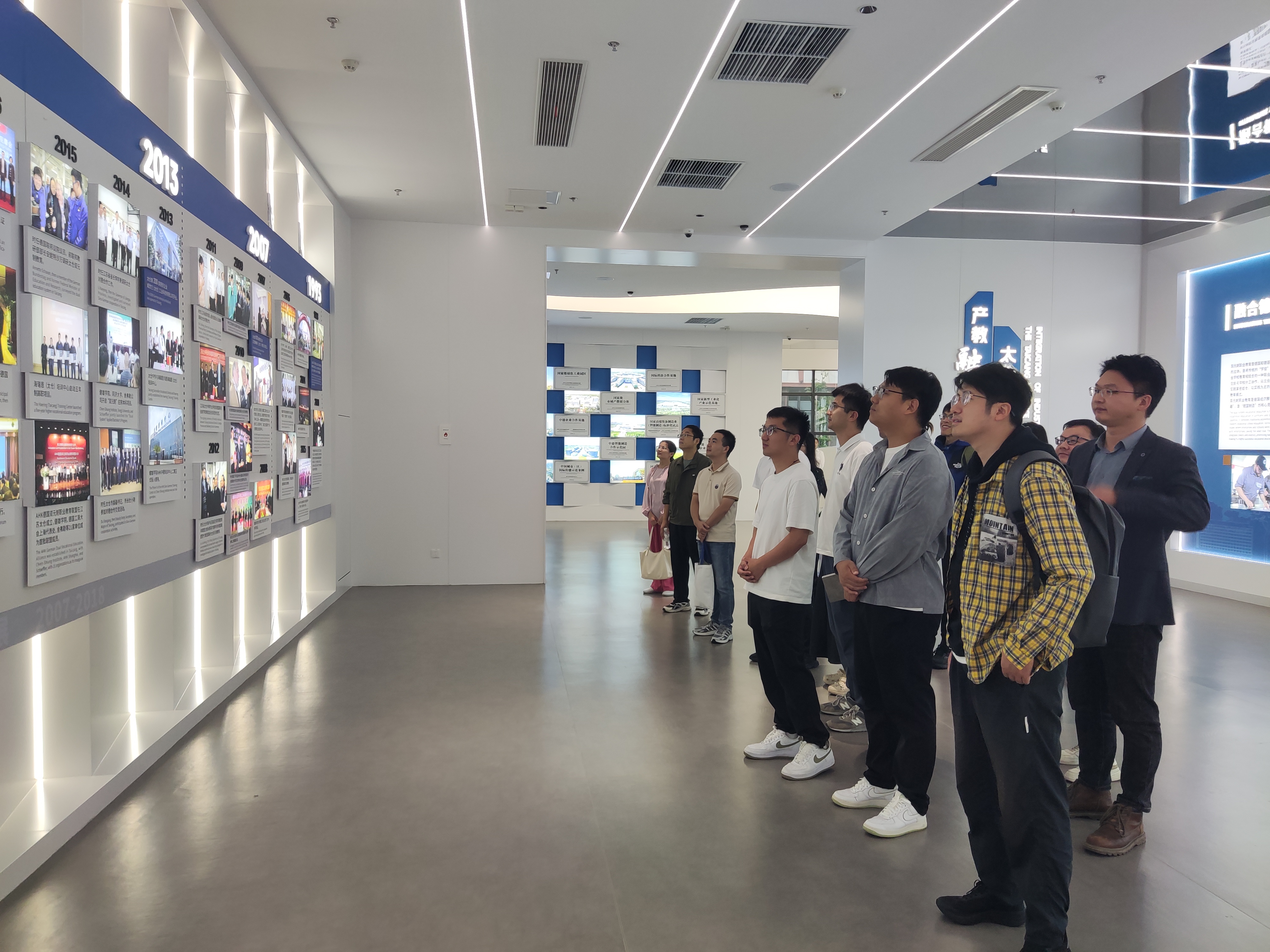 在产业园展厅,讲解员向大家介绍了中德双元制职业教育产业园的基本情况、双元制在太仓的发展历程、双元职教合作伙伴、双元制本土化创新的主要举措、双元制优秀学徒等内容,让大家对“双元制教育”服务产业和“双元制教育服务”产业化有了更为直观的认识。在中德双元制培训中心,负责人详细介绍了学徒选拔管理、学徒培养计划与培训课程设计等有关内容,帮助大家对中德双元制项目的实施有了进一步了解。