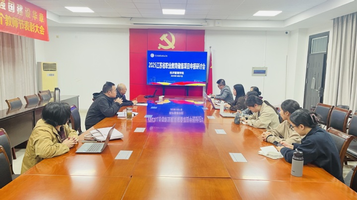 10月21日,经济管理学院在C3-202会议召开2025江苏省职业教育储备项目申报研讨会。经济管理学院院长樊奇、副院长傅兰、标准化工作推进办公室主任苗向阳及申报团队主要人员参加此次会议。