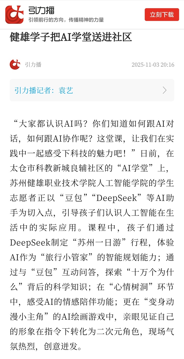 引力播 | 健雄学子把AI学堂送进社区