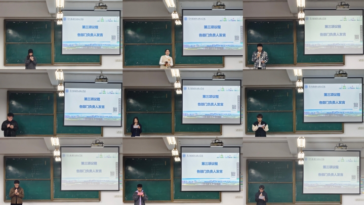 各部门负责人依次汇报了本学期工作计划,展现了清晰的工作思路和切实可行的方案。最新生干事代表分享了加入学生会的初步体会,表达了对参与学生工作的期待和热情。