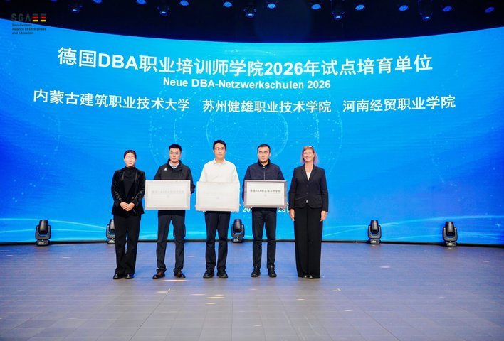 本次大会聚集了中德两国300余家单位,涵盖政府、行业组织、企业界与职业学校的500余位专家学者及院校代表,围绕职业教育高质量发展、产教融合深化与国际合作拓展等关键议题展开深入探讨。我院获评“中德技能大赛合作组织”首批试点培育单位,“德国DBA职业培训师学院2026试点培育单位”。(图/顾晓吴 文/高飞 责编/樊春吉 审核/丁锴)