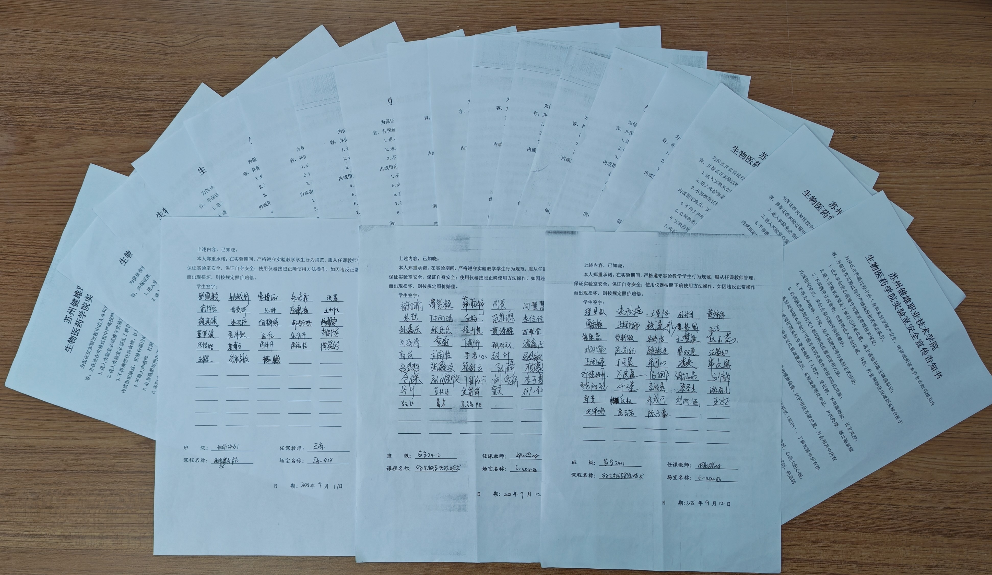 任课教师严格执行实验室安全宣传教育与准入制度,课前开展实验室安全教育,并组织学生签订实验室安全告知书,以“立状明责”的形式,明确师生在实验实训室安全中的具体职责与行为规范,推动安全理念内化于心、外化于行。