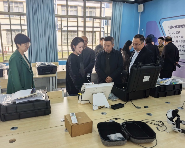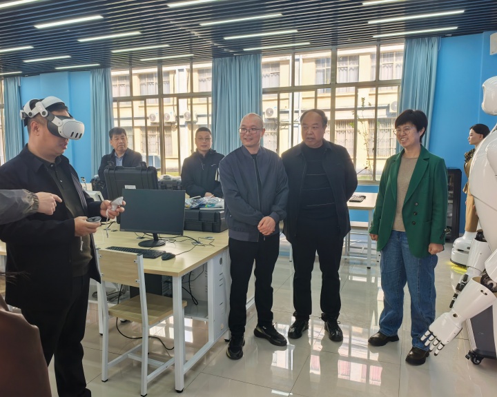 11月14日周至县教育局党委副书记石磊带领相关科室负责人、中小学校长代表一行莅临我院,围绕人工智能赋能教育开展专项调研考察。人工智能学院党总支书记陈东生、副院长仲小英等陪同调研。