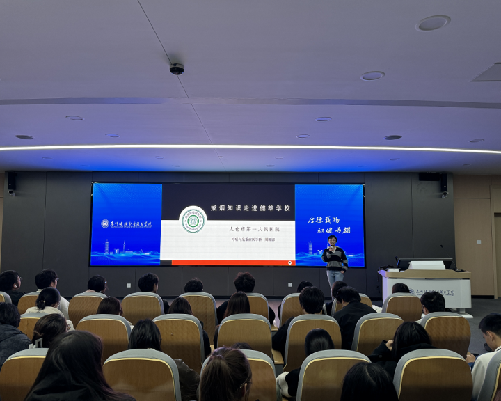 为深入推进文明校园建设,营造健康清新的育人环境,积极响应《苏州健雄职业技术学院文明修身八项严禁、文明修身十项倡议》及《人工智能学院控烟工作方案》要求,11月18日晚,人工智能学院于C3-101开展“拒绝烟草,拥抱健康”科普讲座。太仓市第一人民医院呼吸与危重症医学科主治医师周娜娜担任主讲,100余名学生到场参加。