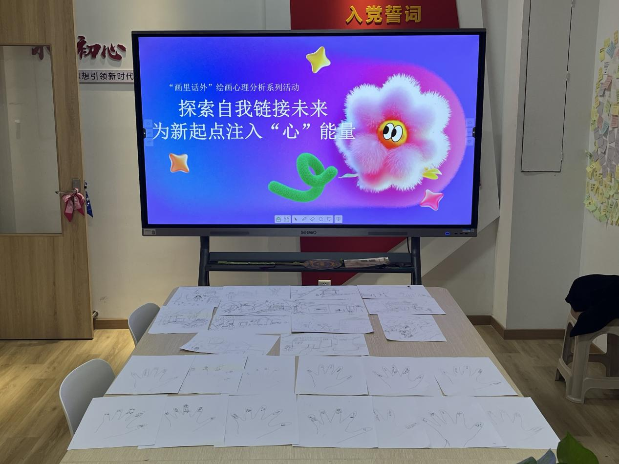 11月18日晚,艺术设计学院在M5“一站式”学生社区四楼活动室成功举办了“画里话外”绘画心理分析系列活动。本次活动以“探索自我,链接未来,为新起点注入‘心’能量”为主题,吸引了众多新生积极参与,现场氛围温馨而充满启发性。