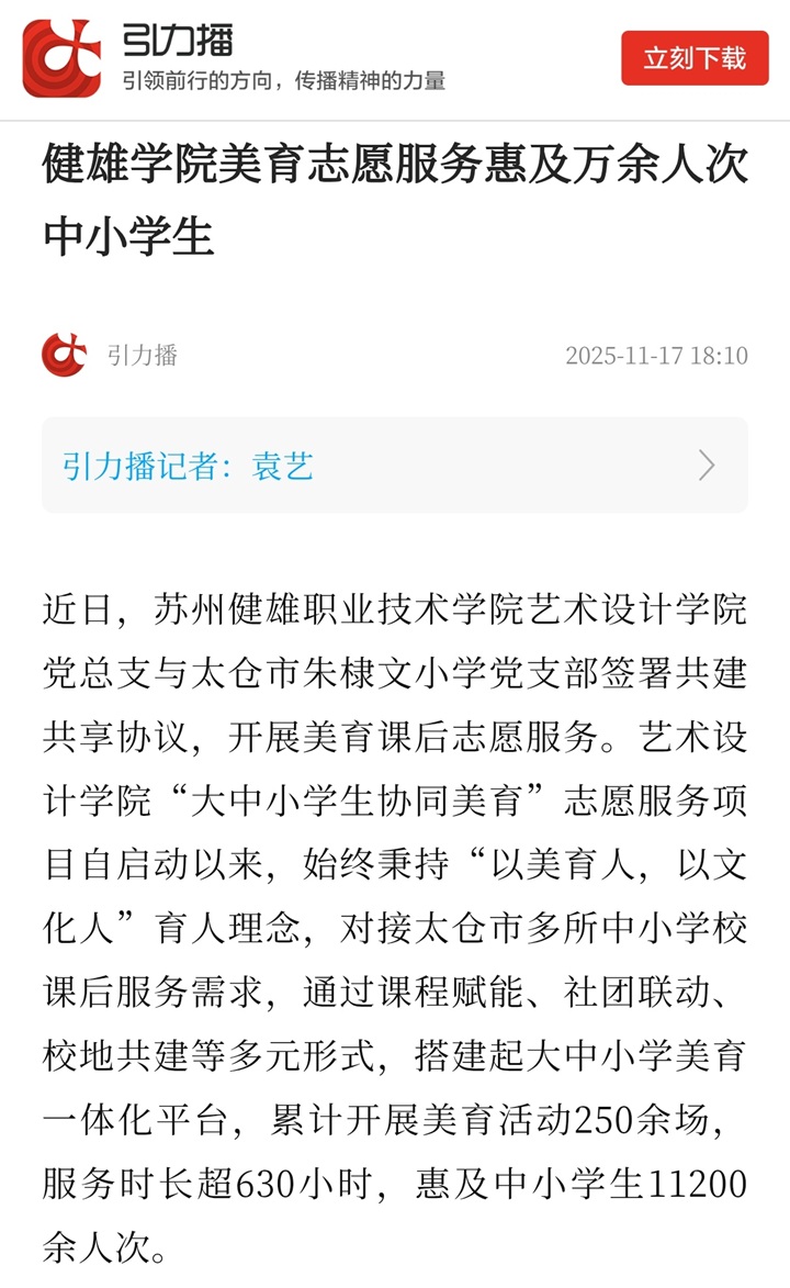 引力播 | 健雄学院美育志愿服务惠及万余人次中小学生