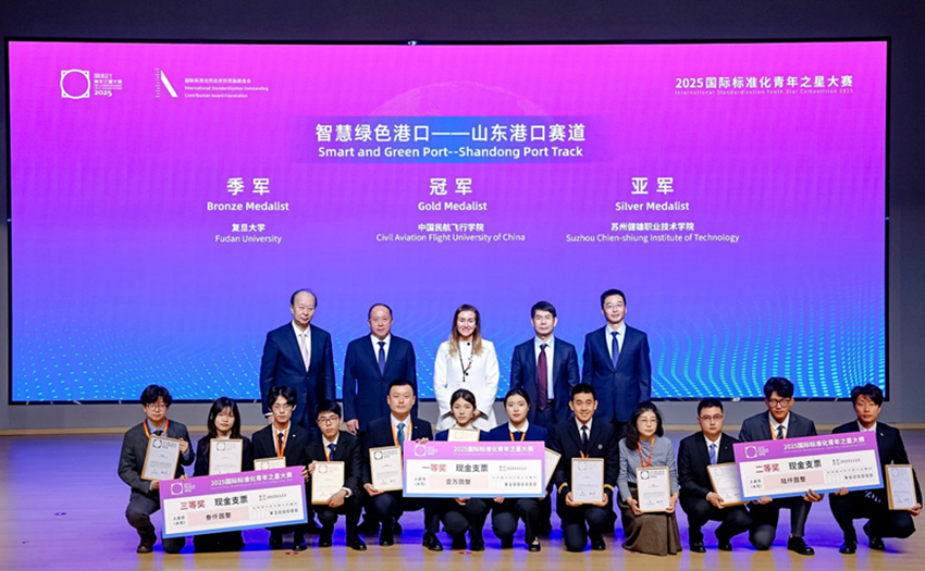 11月22日,第三届“ISO国际标准化青年之星大赛”在山东青岛成功举办,我院参赛团队荣获“智慧绿色港口—山东港口赛道”亚军,是该赛道唯一跻身决赛的高职院校。该项赛事由国际标准化组织(ISO)中央秘书处指导,国际标准化杰出贡献奖励基金会、中国标准化研究院等主办,旨在培养具备国际视野、熟悉标准化工作的新时代专业人才。来自全国21个省(自治区、直辖市)的211支高校队伍参与了比赛。