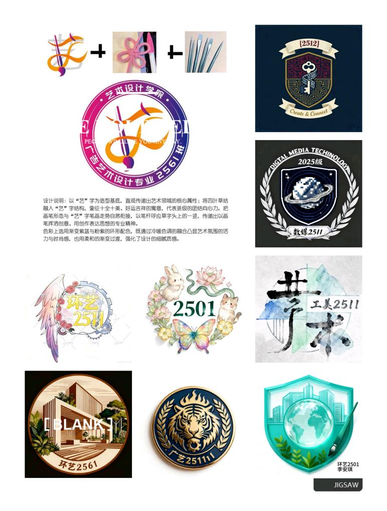 作为学院美育实践系列活动的重要组成部分,本次班徽设计大赛不仅为学子搭建了专业技能展示与交流的平台,更以设计为纽带深化了班级凝聚力。从集体理念提炼到设计方案落地,学子们在团队协作中学会倾听与包容,在创意碰撞中强化专业自信,让“以美育人、以文化人”的育人理念转化为可触摸、可感知的班级文化成果。学院将持续搭建各类艺术实践平台,助力学生提升专业素养与美育素养,培养兼具审美能力、创新精神与责任担当的新时代艺术人才。(图文/李娇 责编/曾妍 审核/孙庆国、何茂昌)