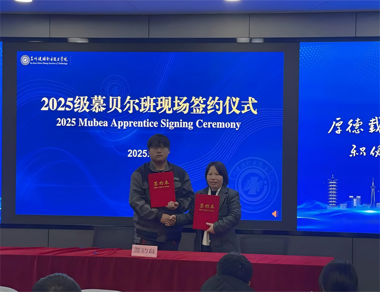 仪式现场,荆瑞红亲自为“慕贝尔班”每一位学徒递上签约文件。整个签约流程井然有序、庄重规范,从文件传递、郑重落笔到握手合影,每一个细节都彰显着学院对双元制人才培养的严谨态度与重视程度,也让“慕贝尔班”的学徒在规范的签约仪式中,深切感受到作为校企共育人才的荣誉感与责任感。
