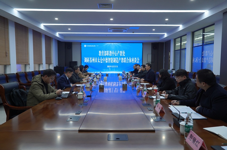 12月17日,教育部职业教育发展中心产教合作处处长、研究员唐以志一行来我院调研苏州市太仓中德智能制造市域产教联合体建设情况。太仓市高新区管委会、太仓市教育局、舍弗勒(中国)有限公司、中德双元制职业教育产业园公司和我院相关负责人参会并作汇报。