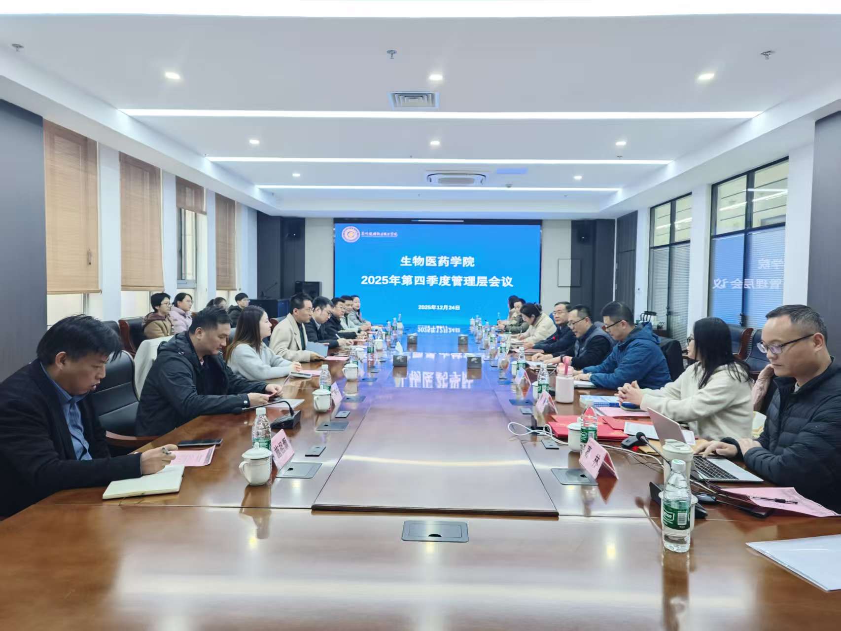 为进一步加强校企合作,推动双元制项目有序开展,12月24日,生物医药学院在东校区行政楼406会议室召开2025年下半年双元制工作高层会议暨第四季度管理层会议,学院党委副书记、院长林长永出席会议并讲话,中德双元制学院负责人、生物医药学院双元制工作小组成员、昭衍(苏州)新药研究中心有限公司等6家双元制合作企业高层管理人员参加会议。