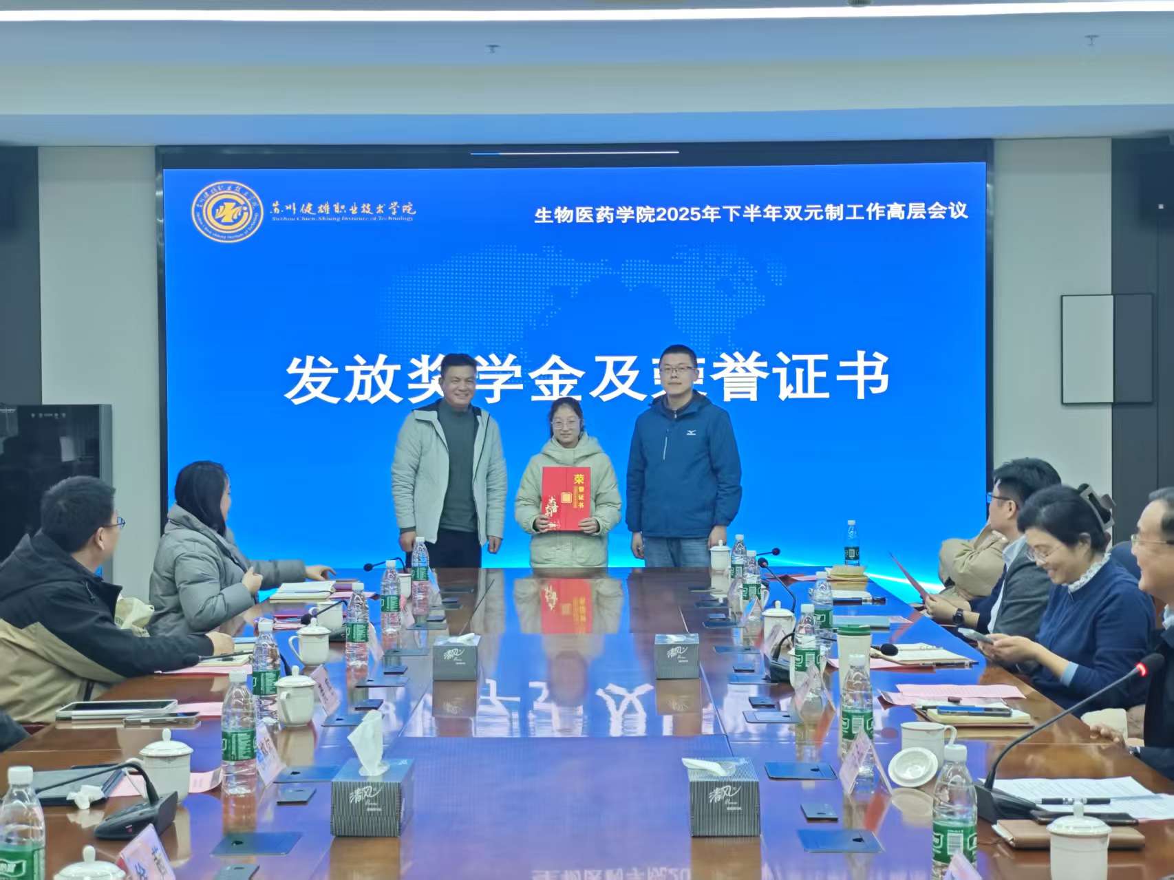 会上,林长永向长期以来对学校双元制项目给予鼎力支持的合作企业表示感谢,同时,回顾了半年以来双元制工作取得的成果,对合作企业积极参与组建江苏省创新药CXO行业产教融合共同体表示欢迎,并为江苏德普检测技术有限公司颁发设备捐赠证书。生物医药学院分享了校企合作教材编写心得并赠书,介绍了与昭衍新药共同制定的动物实验技术员岗位技能标准及证书。百趣生物、泰坤检测和德普检测现场为优秀学徒颁发了奖学金及荣誉证书。