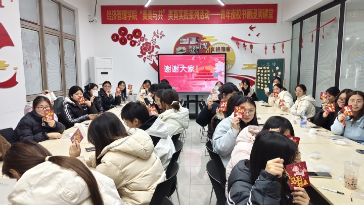 12月29日,经济管理学院在紫薇社区举办“手作暖冬,笺寄新年”元旦主题活动。学院40余名学生齐聚一堂,喜迎新年。