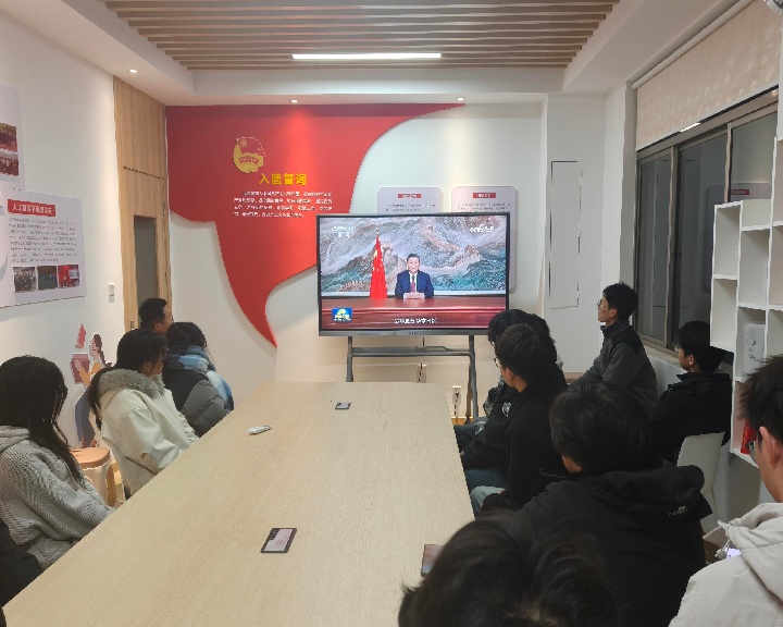 岁末甫至,新元将启。为引导学子感悟时代脉搏、厚植家国情怀,12月31日,人工智能学院在学生社区党团活动室组织观看习近平总书记二〇二六年新年贺词。学院辅导员、学生党员和团员代表齐聚,在聆听体悟中接受思想浸润,凝聚智能科技赋能强国的青春力量。