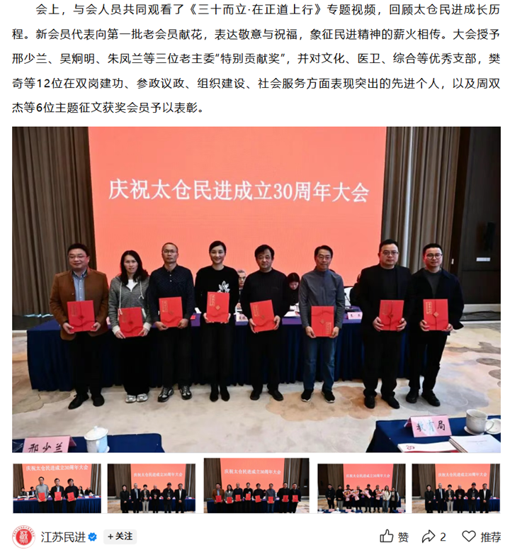 江苏民进官微 | 【基层】太仓民进成立30周年大会召开