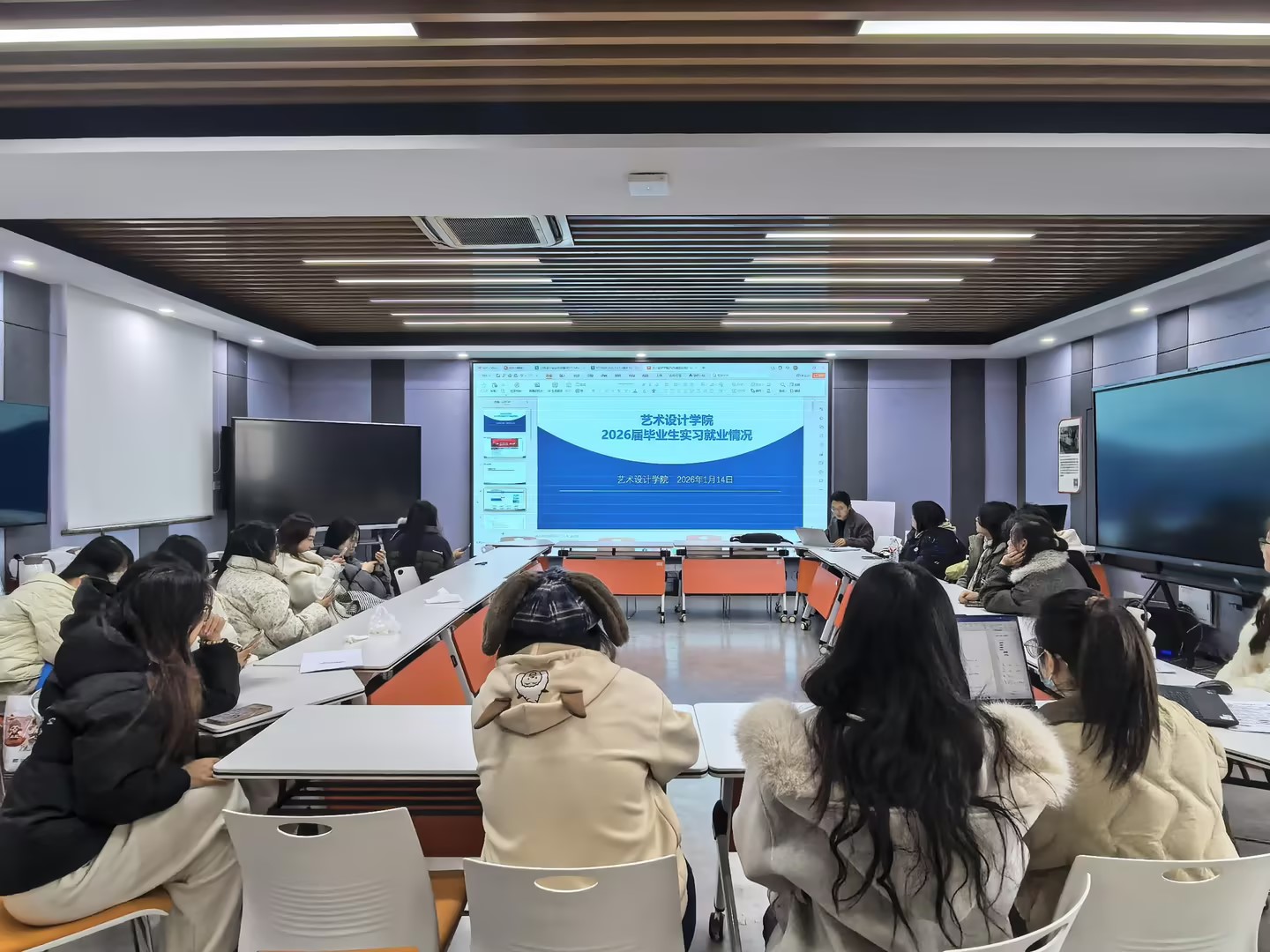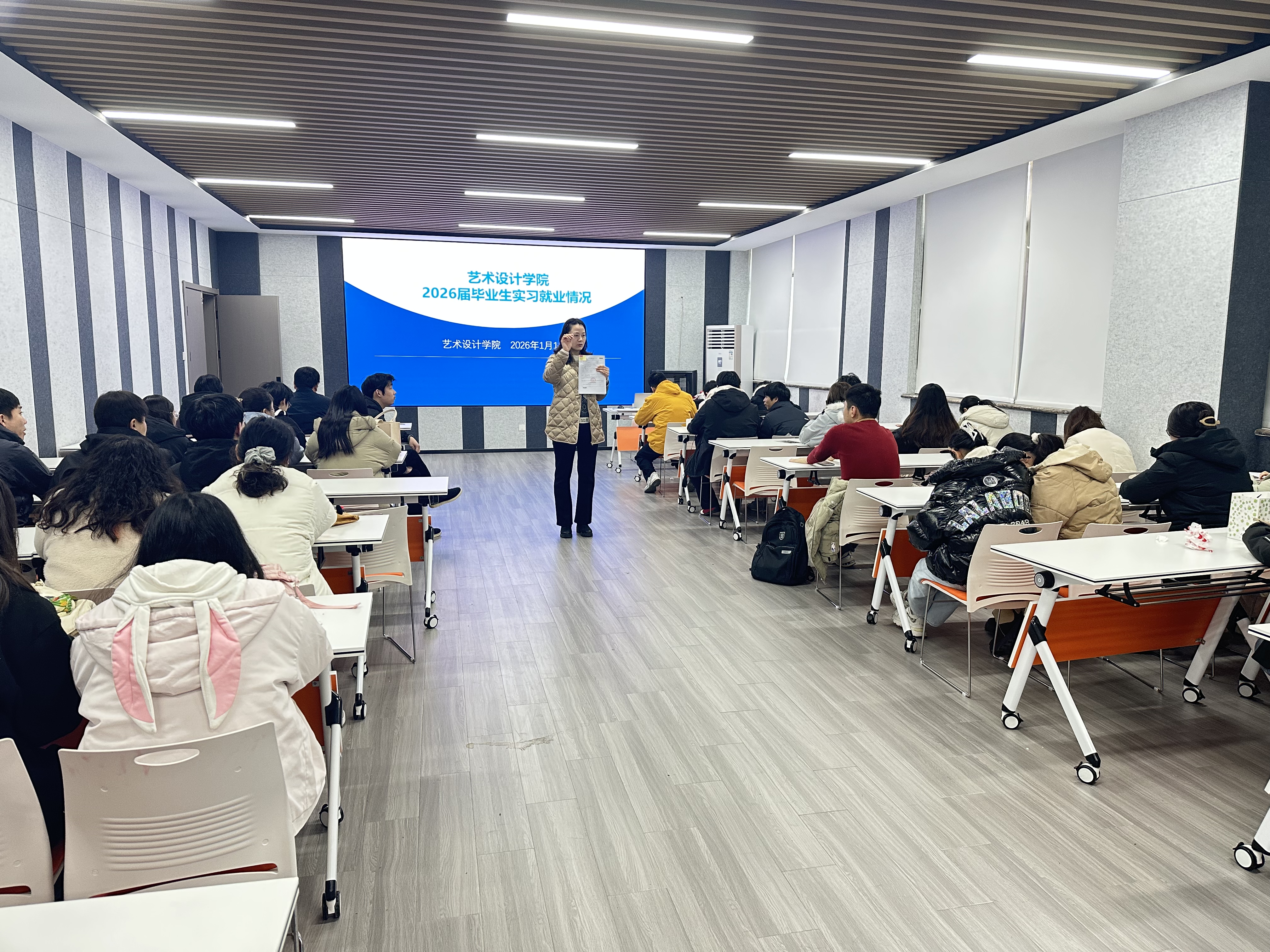 为切实推进毕业生实习就业衔接工作,1月14日,艺术设计学院组织2023级全体实习生开展返校交流活动。环境艺术设计、广告艺术设计、建筑室内设计、数字媒体技术四个专业共200余名学生及学院全体教师参加。