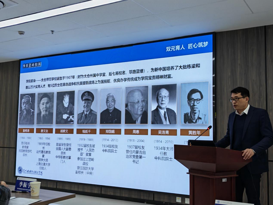 学院党委副书记、副院长周晓刚开展专题讲座,声情并茂地回顾了以吴健雄博士命名的办学特色,“双元制”产教融合的历程,增强新教师的归属感和使命感。同时,带领新教师们现场体验双元制产业园,亲身感知“双元制”模式的实践成效。