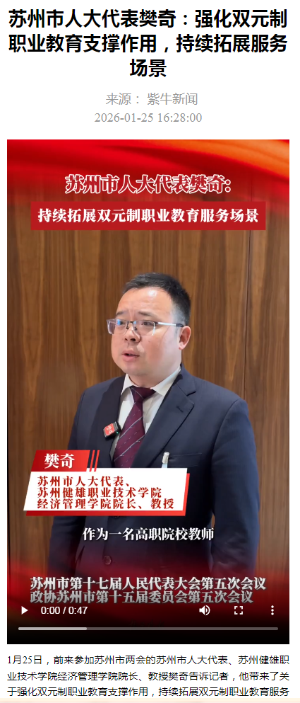扬子晚报苏州市人大代表樊奇:强化双元制职业教育支撑作用,持续拓展服务场景