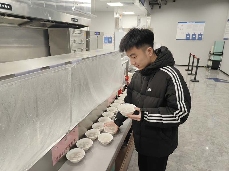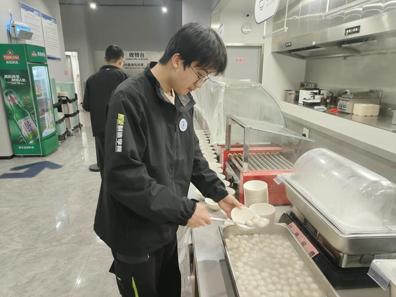 食堂窗口前,实践中心辅导员与食堂工作人员一同为师生们盛汤圆、递碗筷,并送上节日的问候。师生们端着热气腾腾的汤圆,或围坐餐桌前,或边走边品尝,脸上洋溢着惊喜与感动。学生们纷纷表示感动,虽然未能与家人团聚,但在实践中心感受到了浓厚的节日氛围和集体温暖。