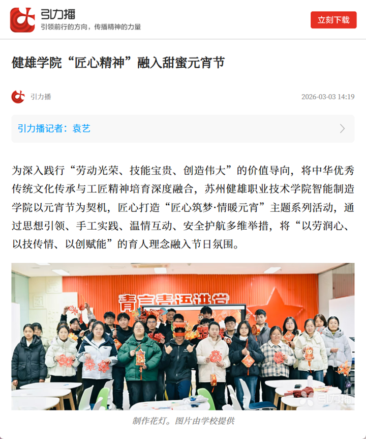 引力播 | 健雄学院“匠心精神”融入甜蜜元宵节
