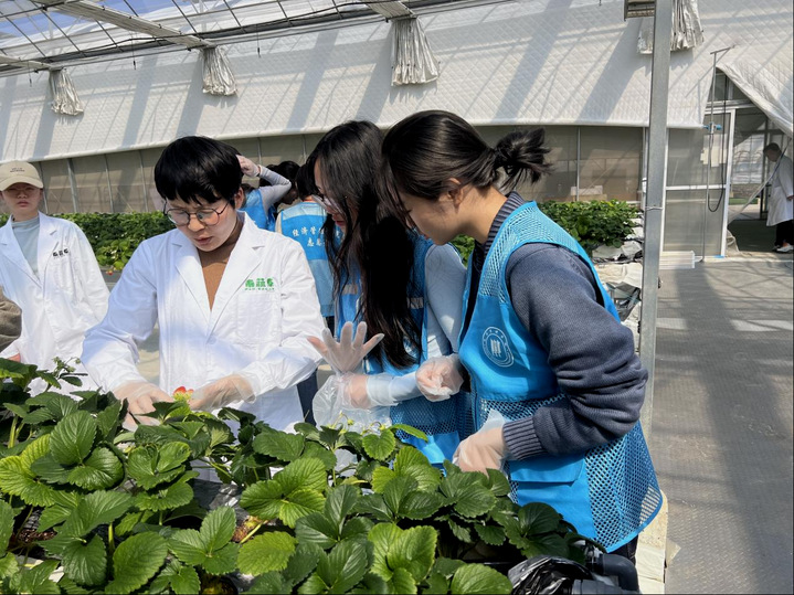 活动现场,队员们热情投入。在合作社技术员的专业指导下,同学们迅速掌握了高架草莓的养护要点。大家小心翼翼地为草莓剔除老叶、修剪多余匍匐茎,并仔细清理病残枝叶,每一个环节都严谨细致,严格遵循“保留功能叶、避免伤主苗”的科学原则。青年学子们在躬身劳作中,真切体会到现代农业的精细管理与“一分耕耘一分收获”的朴素道理。