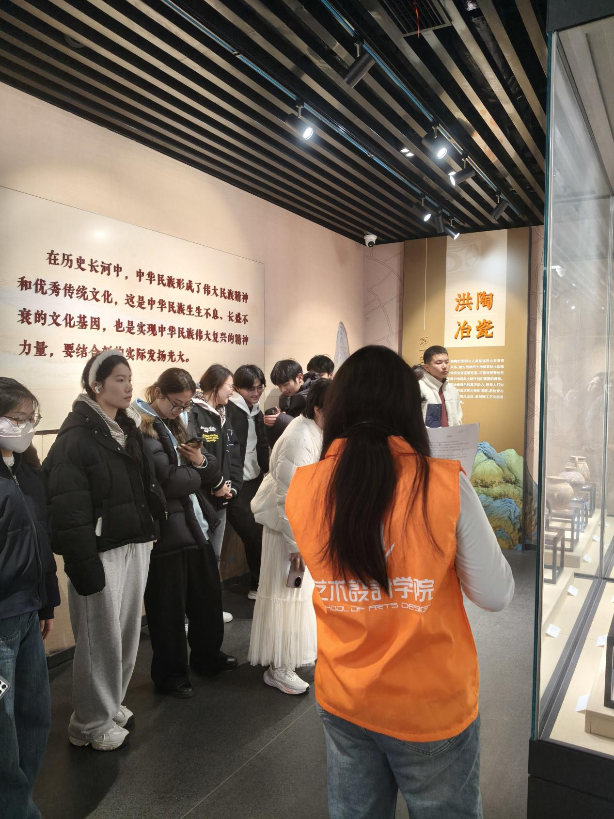 3月初,艺术设计学院《公共空间设计》课程开展传统造型艺术符号采集实践教学。本次教学由关中美、刘磊、朱娟三位老师共同指导,学院陶瓷艺术馆志愿讲解员进行现场讲解。