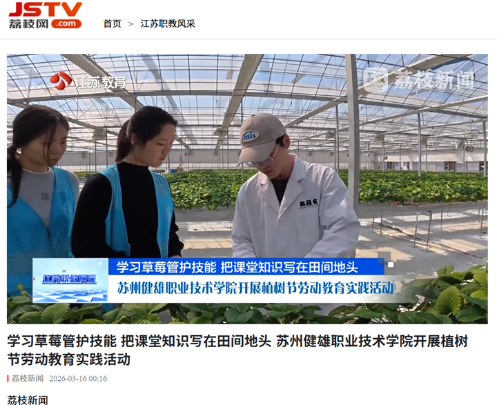 荔枝新闻 | 学习草莓管护技能 把课堂知识写在田间地头 苏州健雄职业技术学院开展植树节劳动教育实践活动