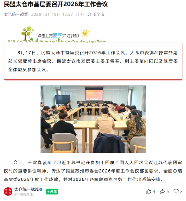 太仓统一战线官微 | 民盟太仓市基层委召开2026年工作会议