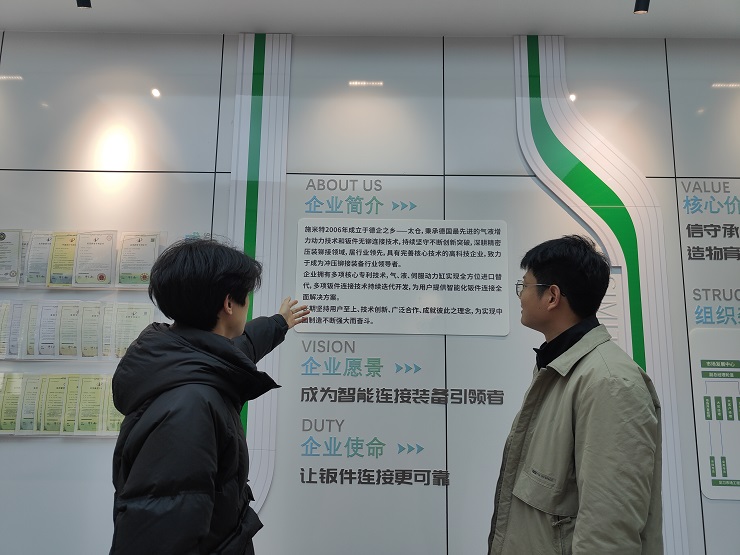 近日,为进一步了解学生实习情况,加强校企合作交流,产教融合实践中心组织开展2023级学生实习单位走访活动。实习就业教师代表走进苏州施米特机械有限公司,以实地走访架起校企协同育人桥梁,助力学生高质量实习就业。
