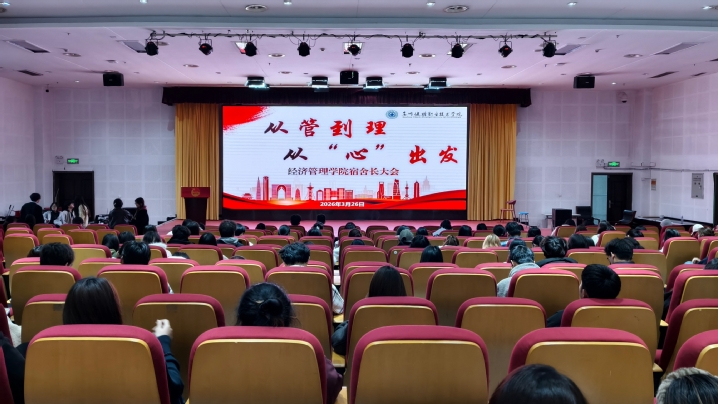 为进一步规范宿舍管理,强化宿舍长责任意识,提升宿舍管理与服务水平,3月26日,经济管理学院“寓见”一站式社区工作室于图书馆报告厅成功举办了“从管到理,从‘心’出发”宿舍长大会。学院24、25级全体宿舍长参加了此次活动。