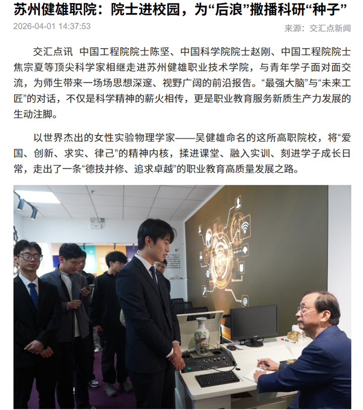 交汇点新闻 | 苏州健雄职院:院士进校园,为“后浪”撒播科研“种子”