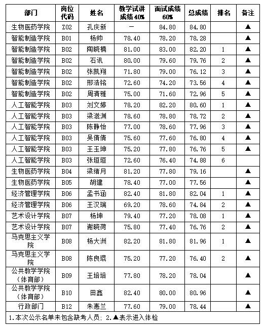 2026年4月12日,根据《苏州健雄职业技术学院2026年长期公开招聘博士研究生教师公告》相关要求,经过资格复审、教学试讲测试和面试,现将考核成绩公示如下: