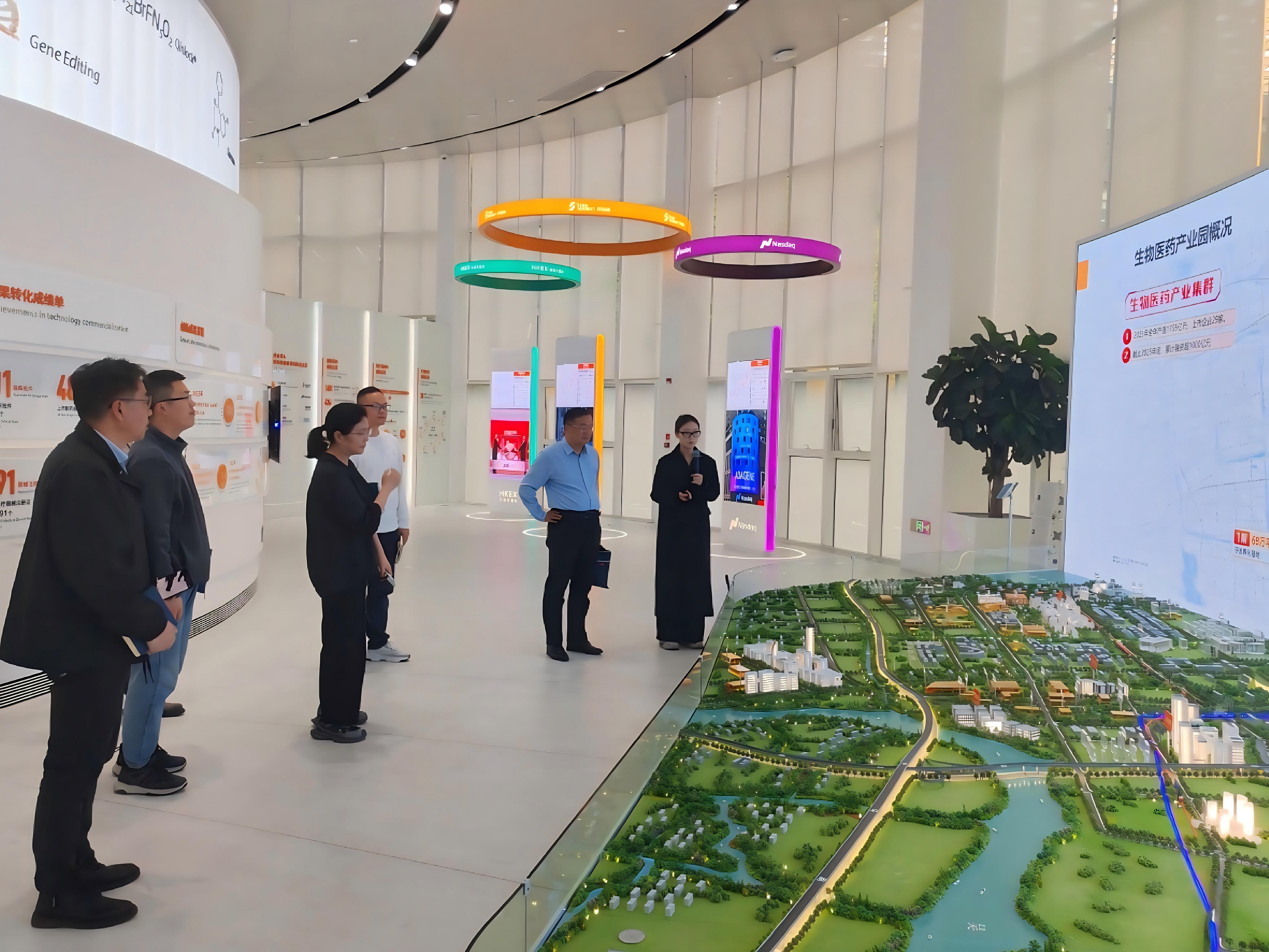 会谈结束后,智库成员一行先后参观了苏州生物医药产业园展示厅、百拓众创空间。在产业园展示厅,全面了解园区的整体规划、产业集群优势、创新成果转化及未来发展蓝图;在百拓众创空间,详细听取公共服务平台的运营模式、孵化服务体系、中小微企业培育成效等方面的介绍,学习该平台在产业资源整合、企业服务赋能方面的先进经验,为我院智库精准对接产业需求、优化研究方向提供了重要参考。