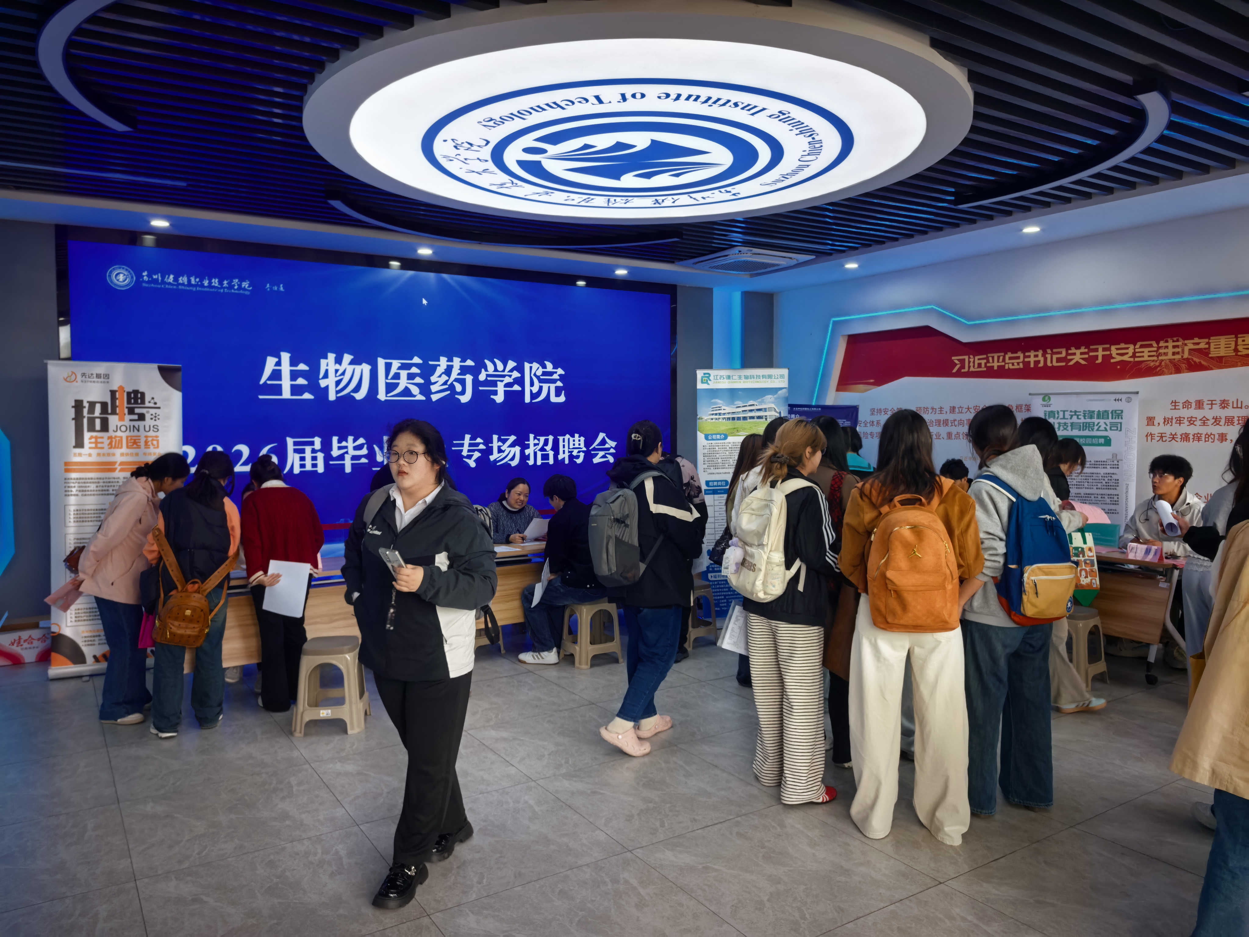 本次活动邀请了包括南京苏康医药有限公司、镇江先锋植保科技有限公司、苏州惺忆新材料科技有限公司在内的15家合作企业返校纳贤,提供试验技术员、供试品管理员、现场采样工程师等优质岗位160余个,吸引了数百名应届毕业生到场求职应聘。
