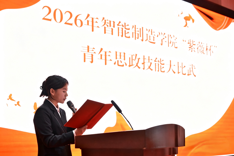 为进一步聚焦思想引领主责主业,团结引领全院青年坚定不移跟党走、勇做新时代新征程奋进者,4月24日,智能制造学院2026年“紫薇杯”青年思政技能大比武于学院图书馆报告厅顺利举办。本次大赛紧扣“青春为中国式现代化挺膺担当”核心主题,经前期层层筛选、多轮比拼,最终共有15名优秀青年选手晋级决赛同台竞技。