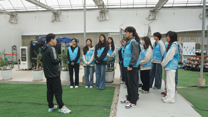 活动当天,合作社技术负责人将课堂搬进了春意盎然的田间大棚,为同学们带来了一堂别开生面的“田间思政课”。负责人详细讲解了花卉移植的技术要点与现代化温室的运营规范,让同学们对现代农业有了直观而深刻的认识。