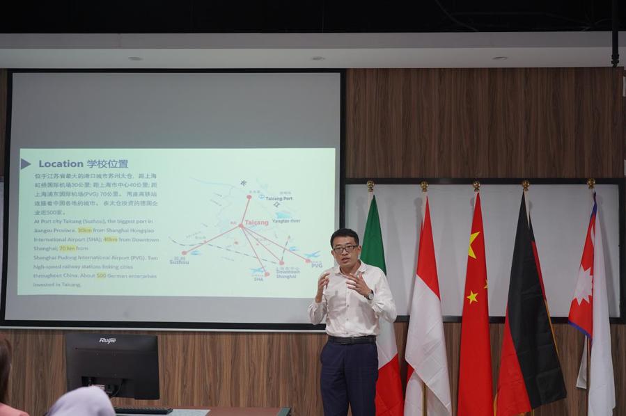 周晓刚对健雄学院的历史、办学规模、对外合作情况等方面进行了详细的讲解,并希望国际学生能够积极学习中国文化和中文,深入感知中华文明的独特魅力,重视专业学习,积极融入群体,保持谦卑求学之心。
