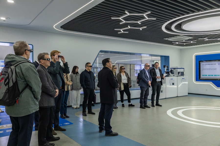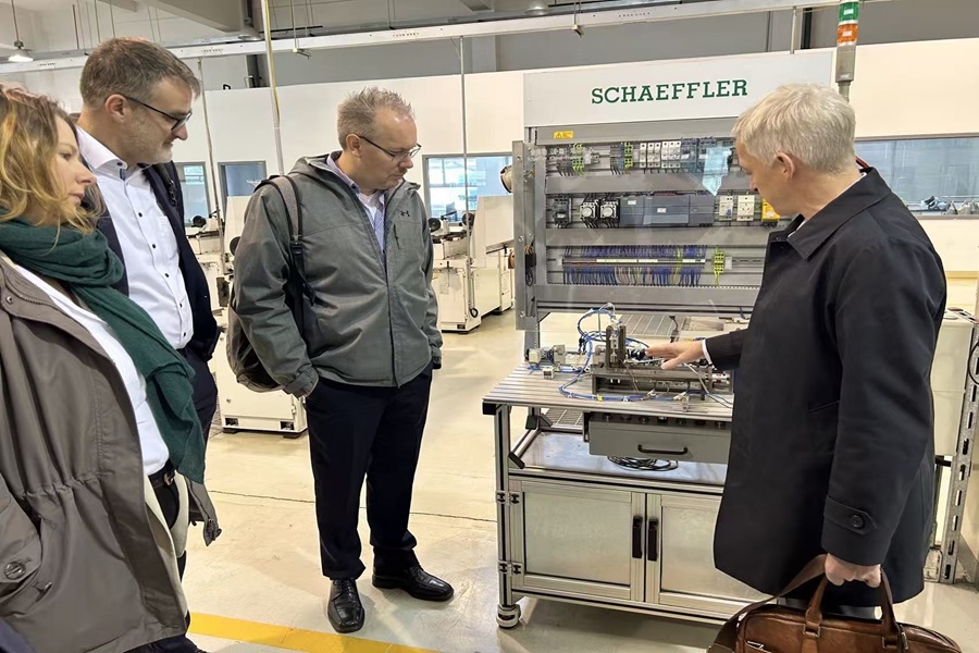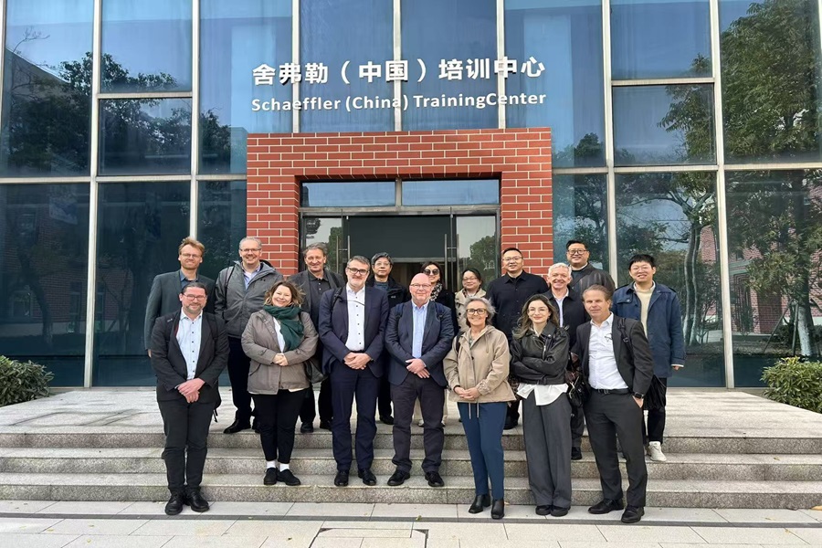 代表团在学院领导的陪同下,先后参观了舍弗勒培训中心与生物医药产教融合中心,深入了解学院在智能制造、生物医药等领域的教学设施与产教融合成果。先进的实训设备、贴近产业的教学环境,以及学生在真实工作场景中的学习状态,给德方代表留下了深刻印象。
