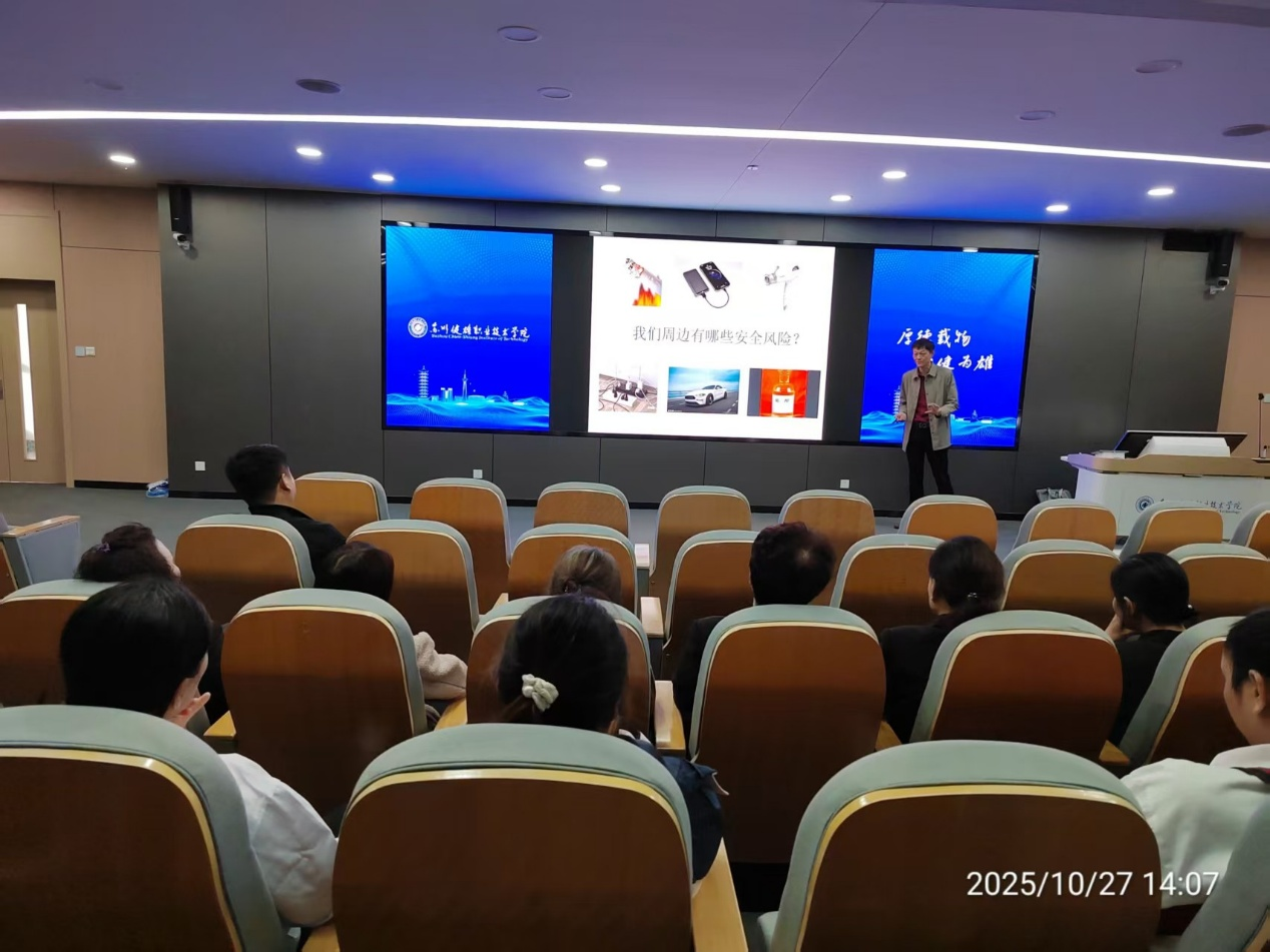 为进一步增强后勤保障人员的安全意识,提升校园消防安全及用电用气安全管理水平,切实防范各类安全事故发生,2025年10月27日,特邀太仓市安全生产协会会长、苏州健安信息技术服务有限公司法定--张洪毅高级工程师来校,为后勤系统外包职工开展了一场主题为“消防与用电用气安全”的专题知识讲座。学院后勤处、保卫处等相关职能部门一线工作人员共计80多人参加了此次培训。