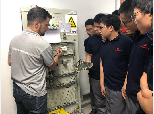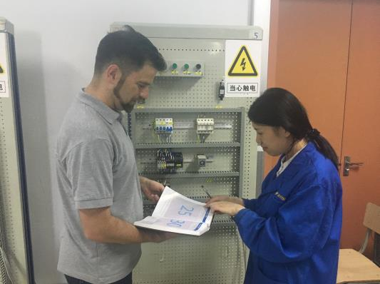 近日,亿迈齿轮公司德国专家亚历山大深入中德工程学院课堂,指导中德班学生实训。该课程名称为电气安装规划与实施,是为期三周的整周实训,德国专家全程参与了课堂教学。