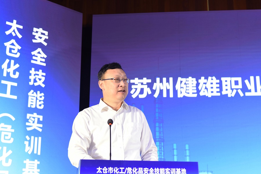 杨益忠在致辞中表示,太仓市化工(危化品)安全技能实训基地成立,体现了地方政府对安全工作的重视,是太仓应急管理局积极深化企业安全培训、发挥职业教育在安全工作中作用的有力举措,是健雄学院产教融合特色办学的高水平示范和实践探索,希望基地根据地区产业情况和培训对象需求,强化危化品行业安全技能培训,发挥服务地方经济发展的作用。