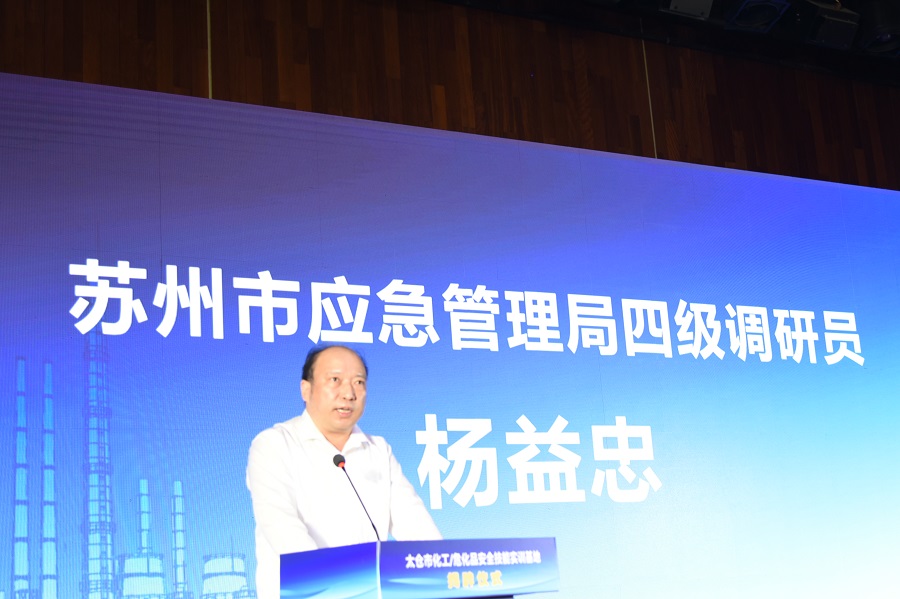 领导、专家、企业代表合影结束后,还进行了江苏省化工安全专家讲座。专家潘旭海为在座人员作了题为《化工过程安全及评估》的培训。