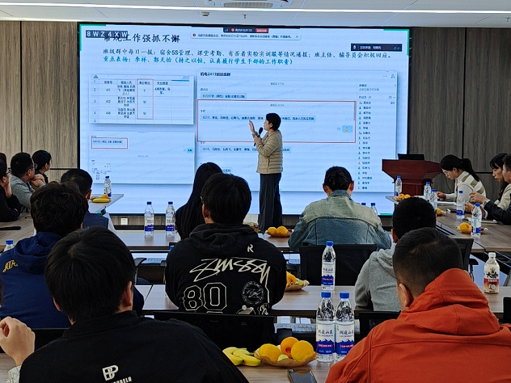 学院党总支副书记、24级舍弗勒项目班班主任吴成炎以“从新生到‘准技术骨干’的蜕变”为主题,向家长分享学徒一年间的成长历程,展示学生入学时的基础技能测评、班级技能考核通过率、评奖评优的结果,系统化呈现在双元制教育体系下学生成长路径。