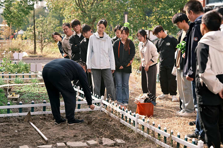 随后的田间实操环节,老同志化身技术导师,手把手指导学生进行深翻平整与精准播种。教学不仅覆盖铁锹使用、播种间距测算等传统农技,也包含苏州青、豌豆、蚕豆等多种作物的实地种植,更重点引入智能喷灌系统,组织学生亲手安装调试。这套系统能基于天气与土壤湿度数据,远程设定喷灌策略,实现从“人控”到“智控”的飞跃。学生在“老带新”的亲密互动中,不仅掌握了劳动技能,更深刻领悟到“深耕细作”背后所蕴含的踏实作风与工匠精神。
