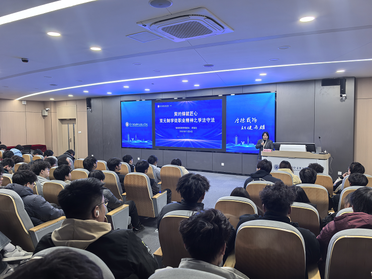 12月初,我院在西校区C3-101举办“契约铸就匠心”专题思想政治理论课,智能制造学院院长荆瑞红围绕双元制学徒职业精神之学法守法展开讲授,全体双元制学徒参加。