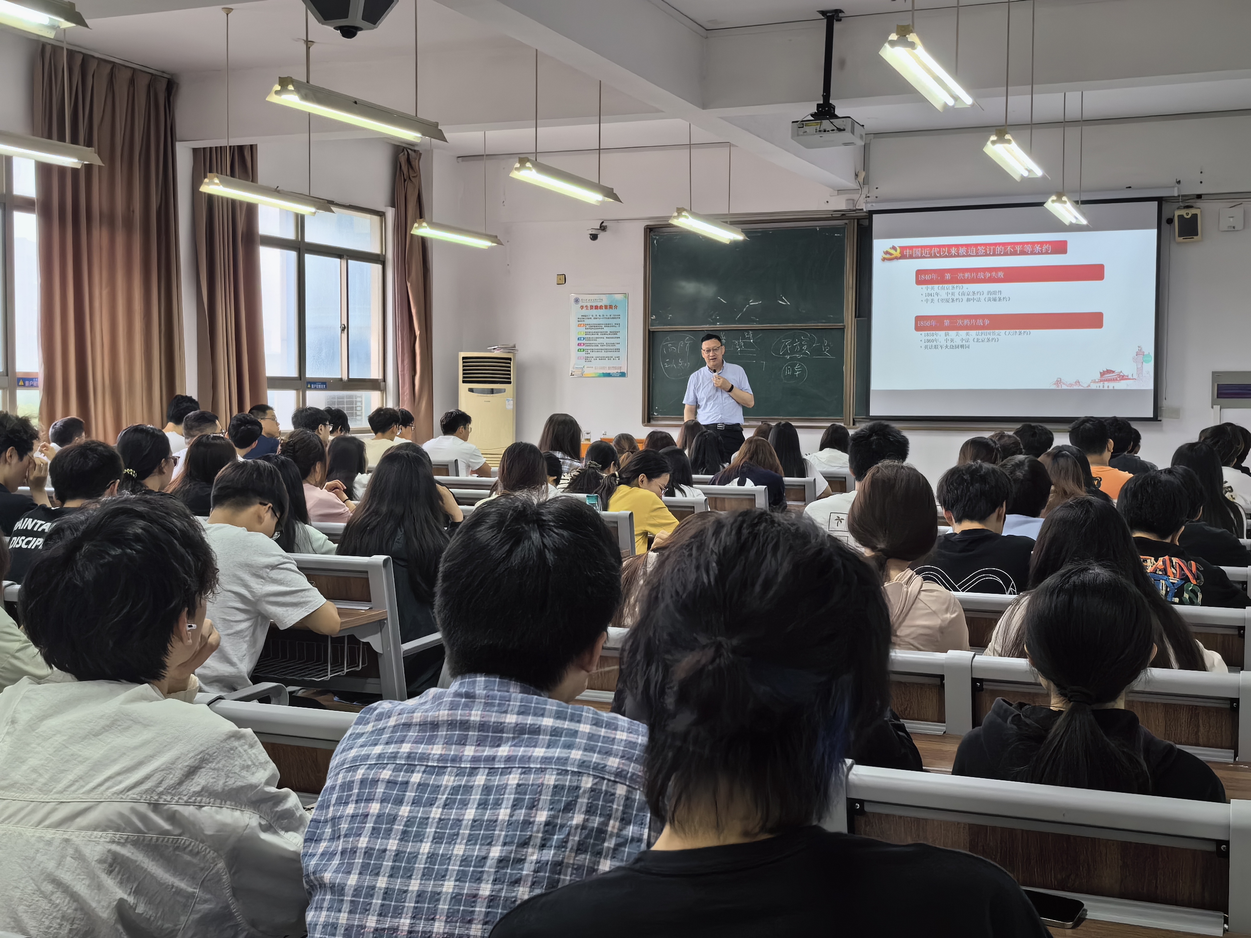 课上,苏霄飞以丰富的历史知识和深刻的理论洞察,带领学生们穿越千年时光,从古代中国的辉煌文明到近现代的民族抗争,再到新中国成立后的快速发展,全面回顾了中华民族的奋斗历程。他指出,中国共产党的成立是中国历史上开天辟地的大事变,是中华民族发展史上的里程碑。并重点阐述了中国共产党成立100年来,带领中国人民进行的伟大斗争、建设的伟大工程、推进的伟大事业、实现的伟大梦想。在党的领导下,中国实现了从站起来、富起来到强起来的伟大飞跃。