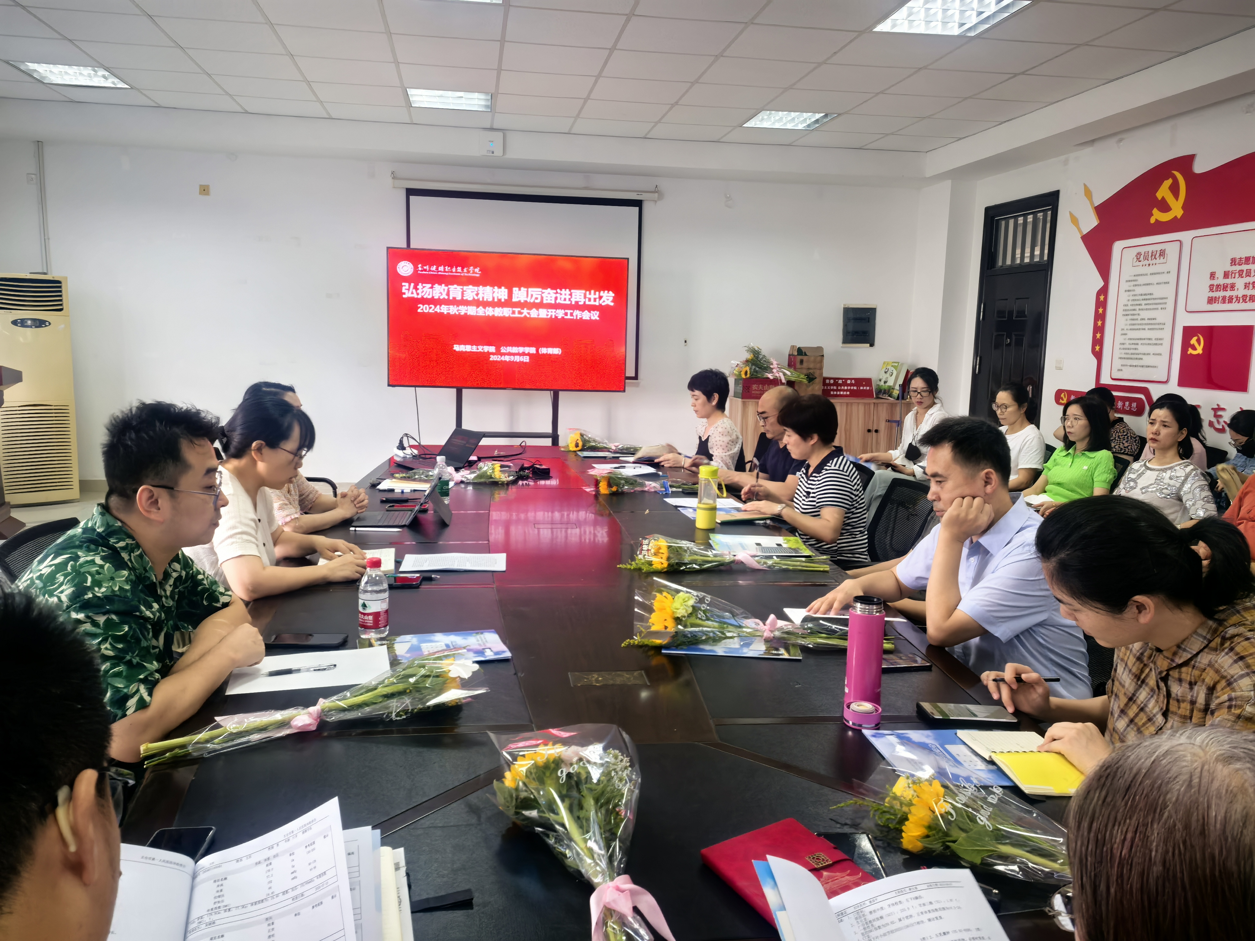 周丽雅院长首先代表学院领导班子在教师节来临之际,向全体教师献上工会鲜花并表达了祝福。随后,周丽雅总结了暑期党组织、行政、各教学团队等各条线完成的工作,对大家暑期“休假不休活”表示了肯定,同时布置了学院开学和本学期工作,重点强调了党建工作、教科研、师资队伍、学校重点项目等方面的工作要求。对学校相关工作会议精神进行了传达,特别是苏霄飞书记对学校工作提出的“六个关键词”,周丽雅希望全体教师着眼学校发展大局,根据自身课程特点,持续提升能力,优化工作方法,注重问题导向,把工作落到实处;要求学院全体行政人员也要各司其职,优化工作方法,做好全院各项工作的管理、组织和服务工作。学院全体教师要进一步统一思想、凝聚共识、提振信心、增强斗志,在新的学期干出好势头、干出新业绩,为学校高质量发展贡献力量。