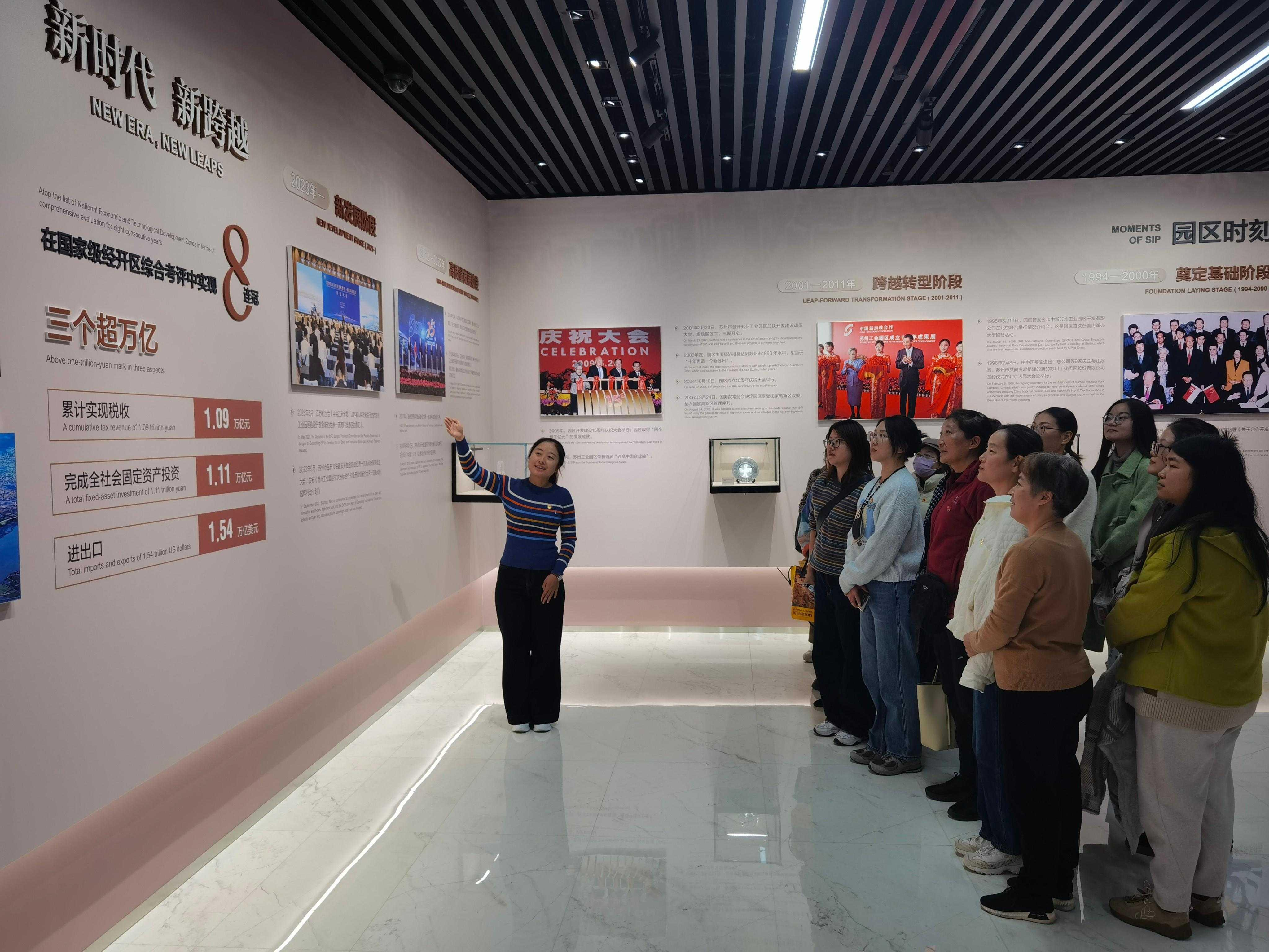 在苏州工业园区展示中心,党员教师们通过沉浸式展厅、数字化展板全方位感受园区从“园区经验”到“苏州样板”的蝶变历程,深刻感悟“改革创新、开放包容、敢为人先、追求卓越”的园区精神,进一步明确了思政课程与课程思政需以党建为引领,精准对接区域产业需求与人才培养目标,让职教育人始终沿着 “为党育人、为国育才”的正确方向前行。
