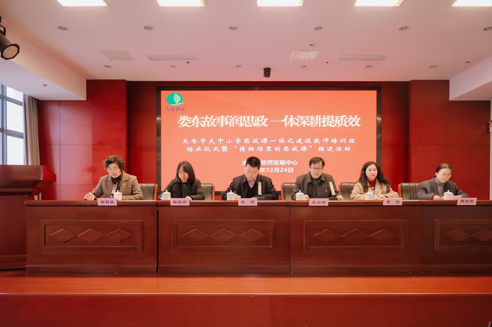 2025年12月24日下午,太仓市大中小学思政课一体化教师培训班结业仪式暨“博物馆里的思政课”推进会顺利举行。作为区域思政教育协同发展的重要参与者,我院思政教师一同参会。本次活动以“娄东故事润思政一体深耕提质效”为主题,探讨思政课一体化建设提质增效之路。